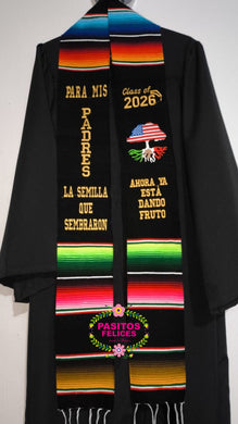 2026 Papá Mama Gracias - Sacrifices Black Graduation Stole Sarape Sash IN STOCK
