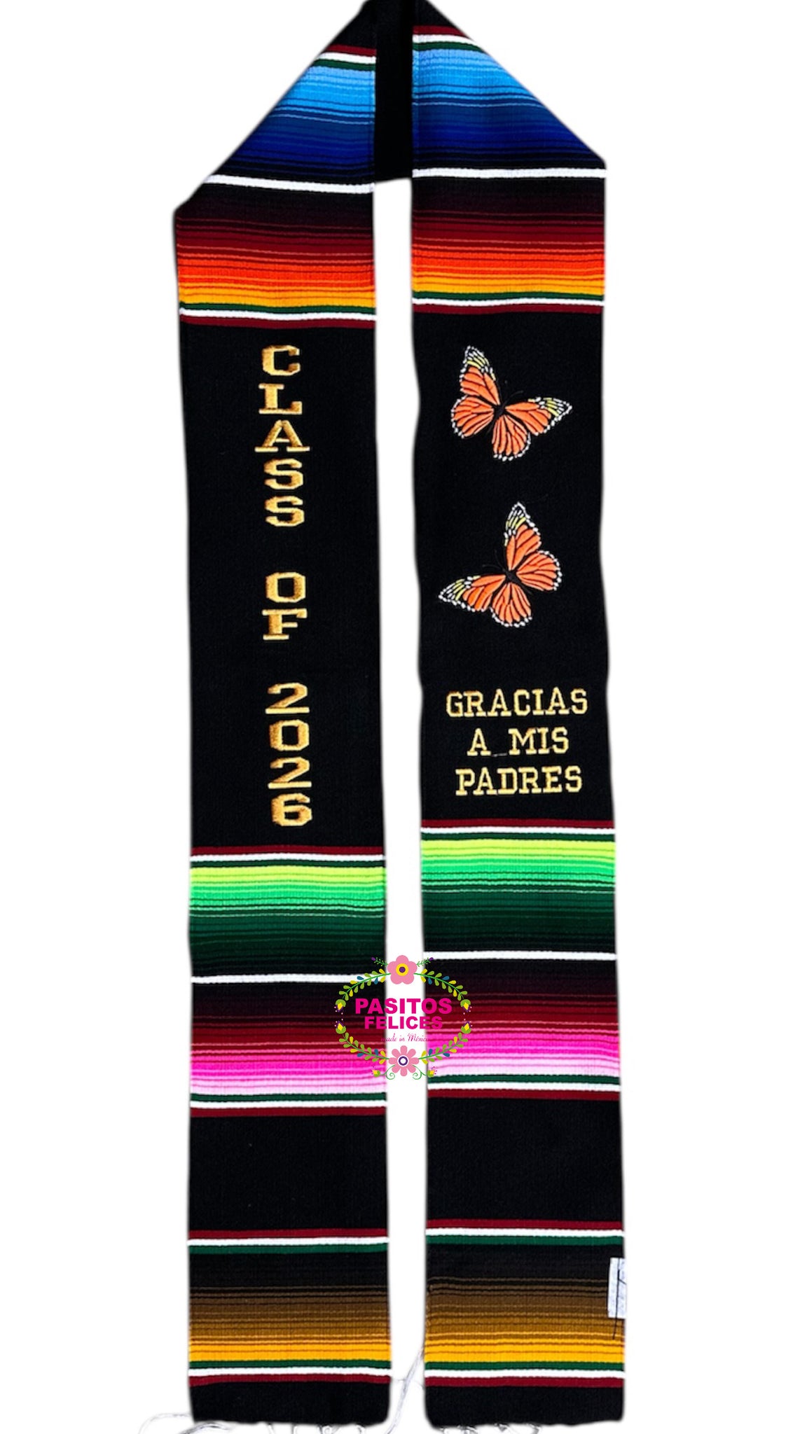 2026* Monarcas Gracias a mis padres stole Sarape Sash - IN STOCK
