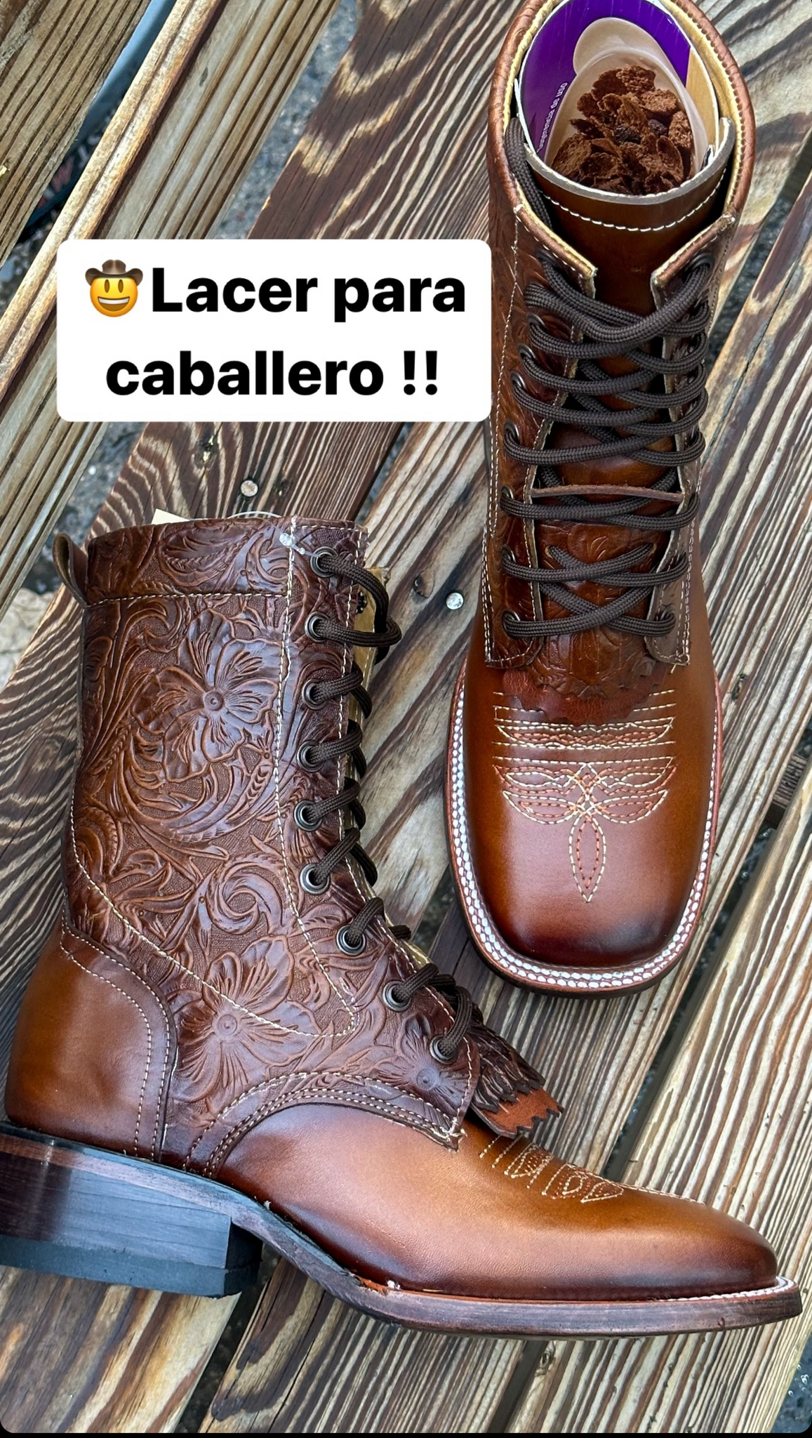 Men Botas Lacer / WIDE women- Shedron Leather Tooled Wide Boots