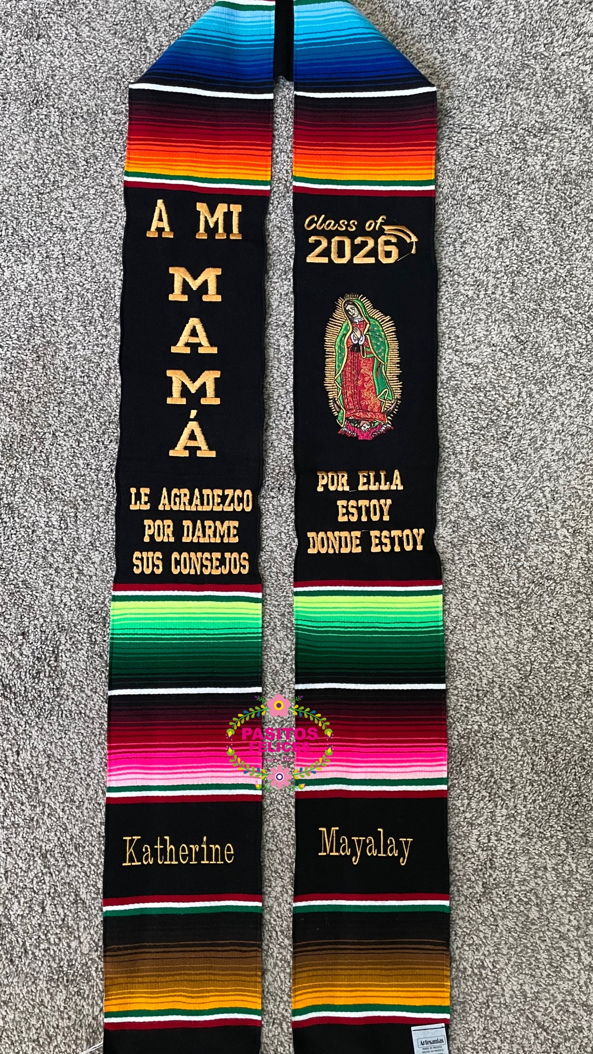 *2026* A mi mamá consejos Virgen Black Graduation StoleSarape Sash IN STOCK