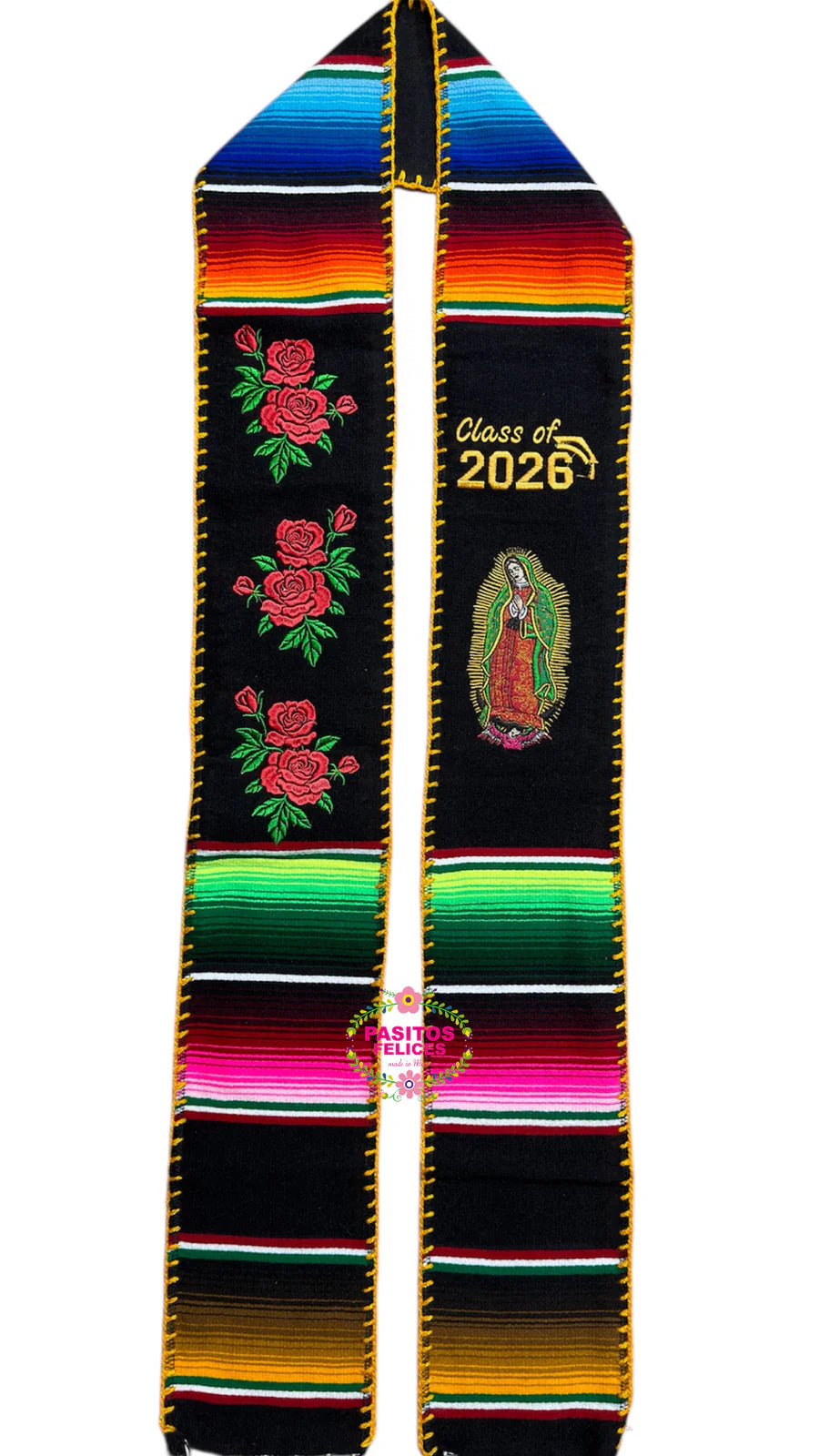 *2026* Virgen and Roses Black Stole Sarape Sash IN STOCK