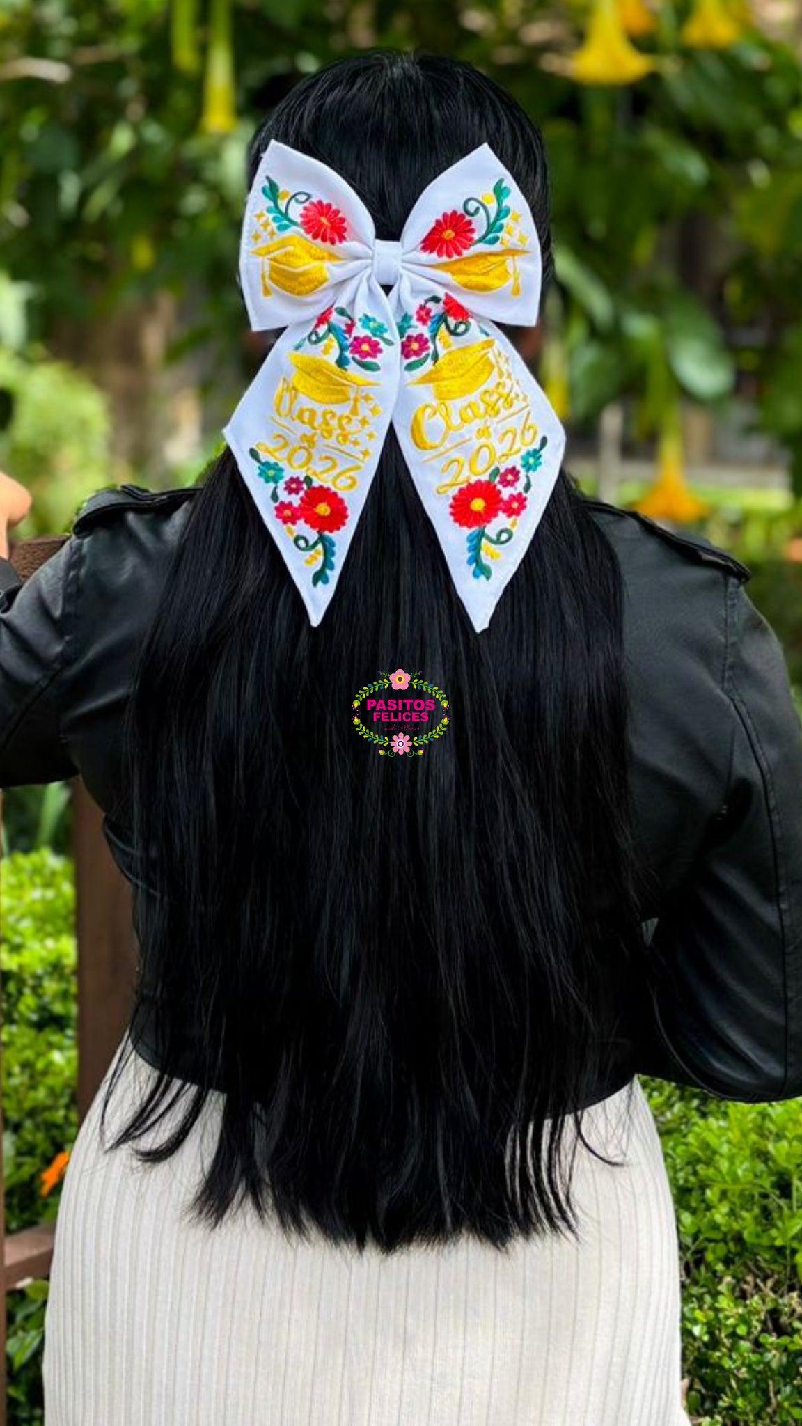 White Moño - Unique Embroidered Class of 2026 Bows IN STOCK
